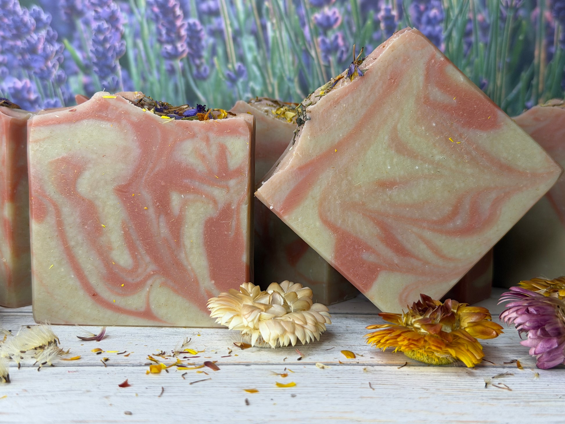 Enchanted Garden Goat Soap, Lavender & Patchoul, Earthy Floral hint musk, Grit: Fine